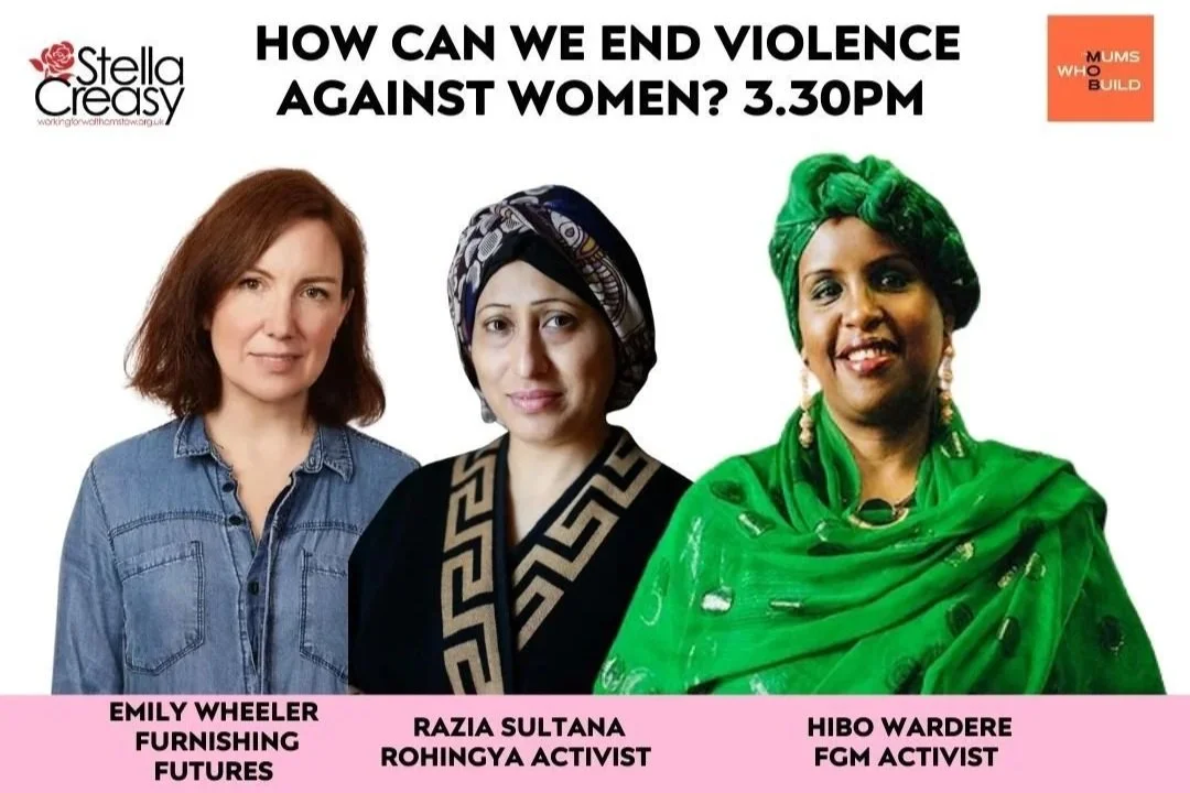 A discussion on the realities women face and the work being done to support survivors and create change.Speakers:Emily Wheeler, Founder of Furnishing FuturesHibo Wardere, campaigner and activist; &Razia Sultana, an independent Rohingya human rights activist, educator and lawyer