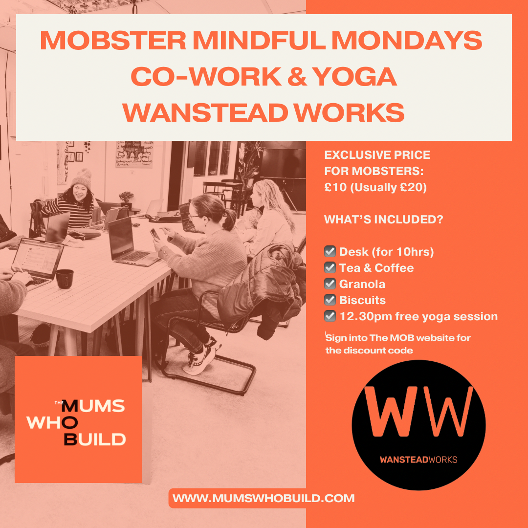 On Mondays and Wednesdays join fellow like-minded, inspiring mobsters, for a day of co-work, and on Mondays enjoy the extra bonus of complimentary 40 minute lunchtime Flow Yoga to ease you back into your afternoon.All members of the MOB community get a 50% discount on Mobster Co-working Wednesdays (£10 instead of the usual £20) providing Mobsters a more affordable option for non-members to experience the space, along with additional perks like granola, fruit and unlimited tea or coffee. Sign into The MOB website and head to the Benefits page to get the 50% Wanstead Works discount code. Use the code and pay on arrival. No need to book.Networking Events for Women Business Owners