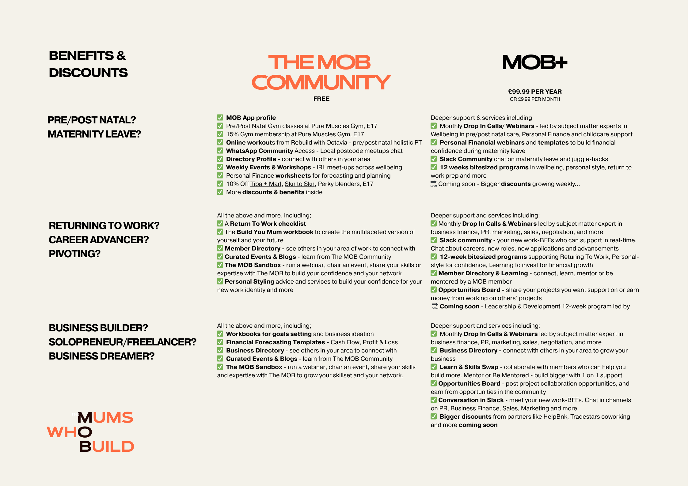 Mums Who Build enable mothers to design a new operating system for motherhood. One where your wellbeing, ambition and success thrive together, with hundreds of (m)others doing the same.The MOB allows mothers to stop winging-it, and start building their money-strong motherhood to say yes to what really matters.Build Yours here