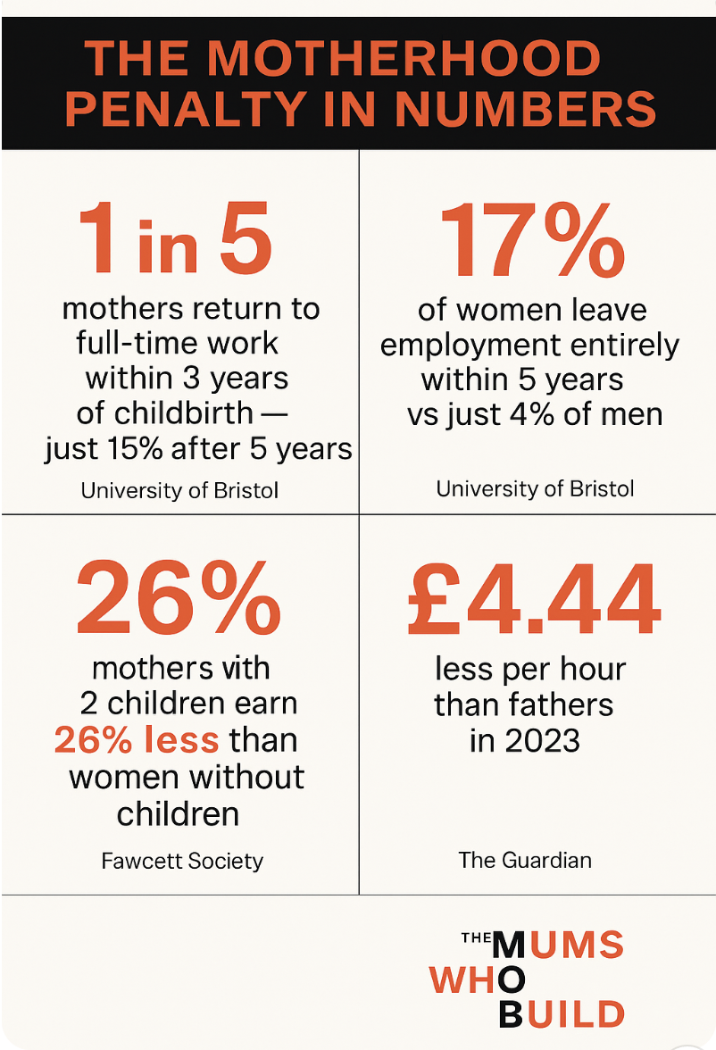 Recent research from Bloomberg shows the stark reality: women’s earnings often never fully recover after having children. This is exactly why Mums Who Build exists - to challenge these systemic barriers, empower mums with tools and confidence, and create a future where ambition and motherhood can thrive together